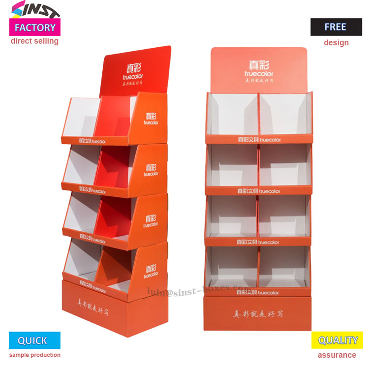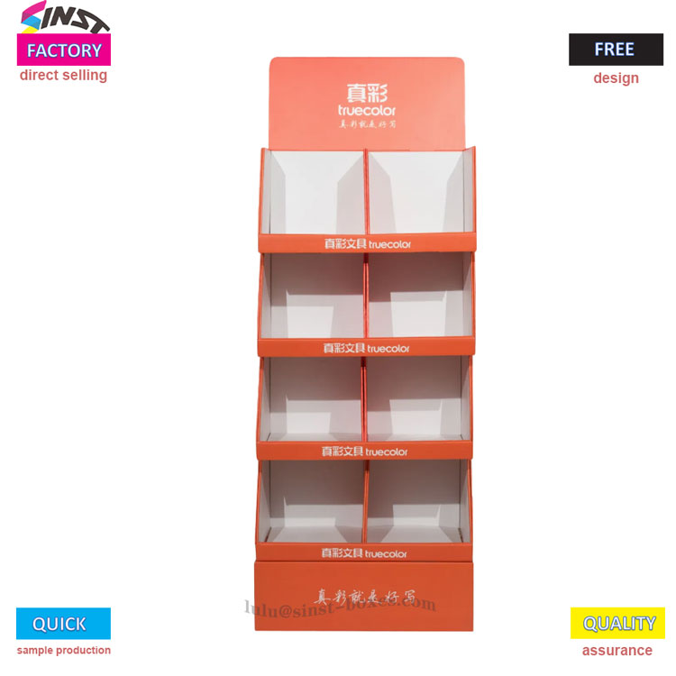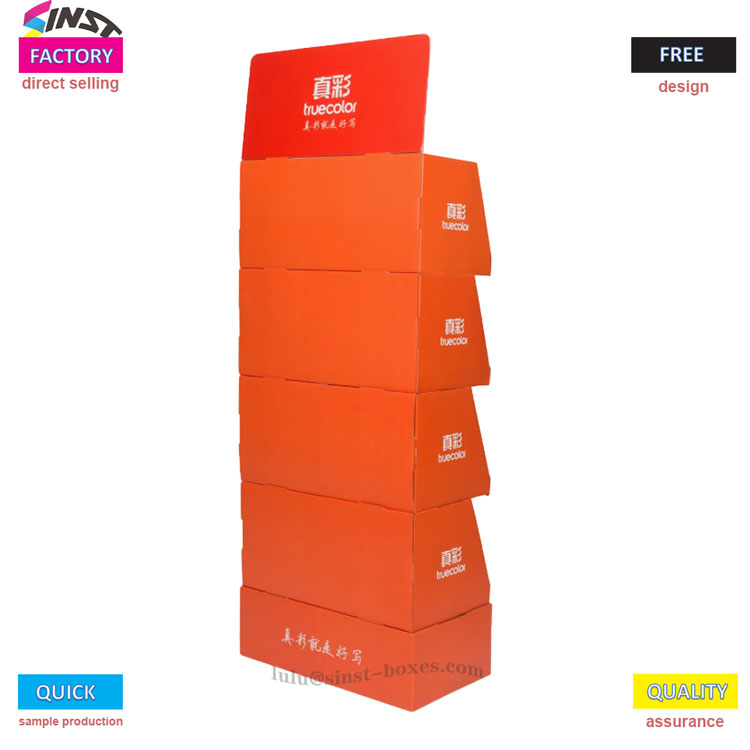Šis ryškiai oranžinio raudono gofruoto popieriaus stendas yra vizualus patrauklumas ir prekės ženklo efekto artefaktas. Kiekvienas šoninės ir apatinės dėžutės korpuso sluoksnis pakartotinai išgraviruotas prekės ženklo logotipu, gilindamas kliento atmintį. Popierinių rankšluosčių gofruotojo kartono dėžutės vitrinos yra pagamintos iš storo gofruoto popieriaus, pasižyminčio dideliu atsparumu gniuždymui, be to, jis yra labai tvirtas, kai sukraunami keli daiktai. Daugiasluoksnė struktūra su atskirais skyriais, puikiai tinka audinių ritiniams, raštinės reikmenims ir lengvai pasiekiama neužstrigstant; Nuo sparčiai judančių prekybos centrų plataus vartojimo prekių skyriaus iki savitarnos parduotuvių kasos, jis patraukia vartotojų dėmesį kontrastingomis spalvomis, patobulindamas „vitrinų lentyną“ į „pardavimų stiprintuvą“, padedančią lengvai padidinti produkto eksponavimą,