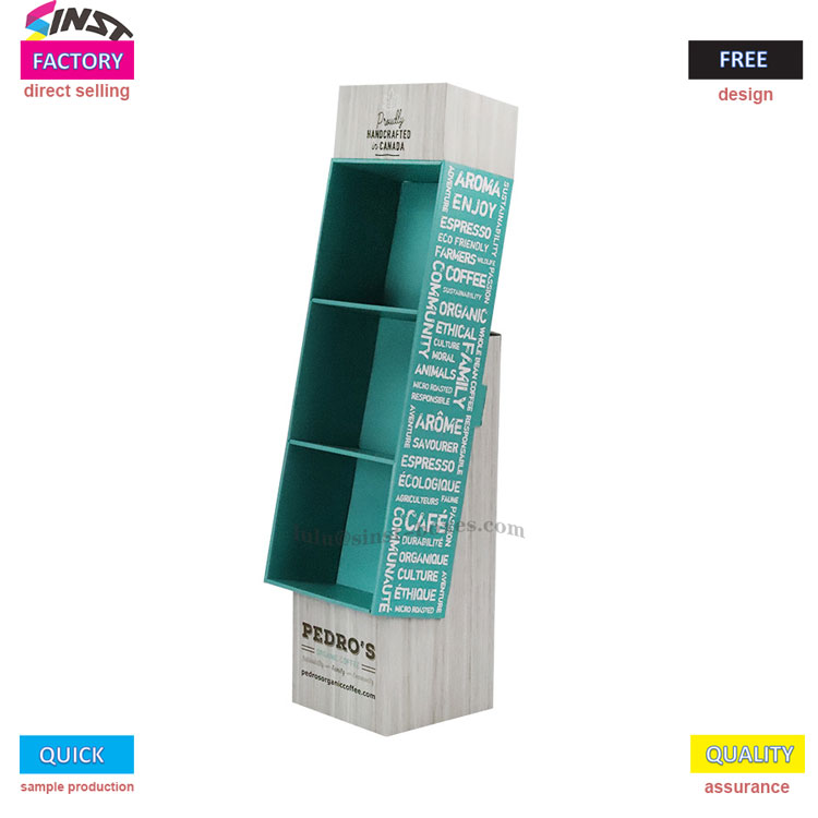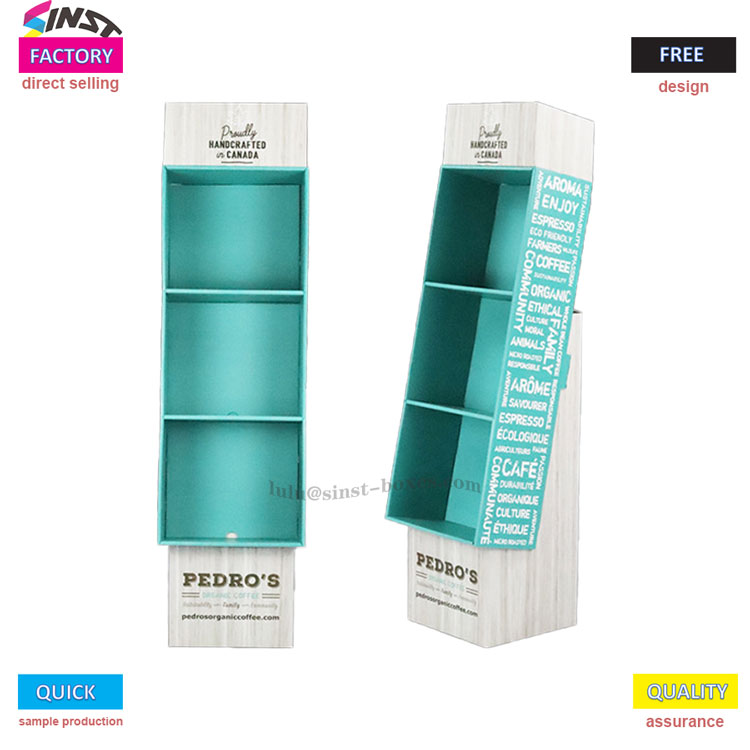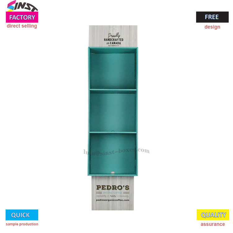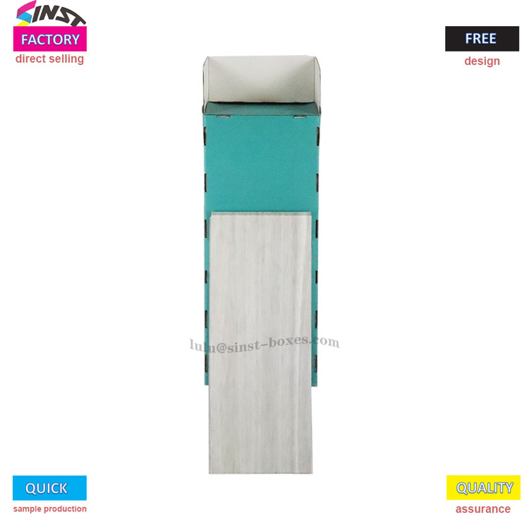 Šis raštinės reikmenų gofruotas vitrinos stovas daugiausia naudojamas įvairiems raštinės reikmenims rodyti. Bendras korpusas yra stačiakampio formos ir pagamintas iš šviesios medienos arba baltos medienos imitacijos medžiagos, kuri atrodo gaiviai ir tekstūruota. Priekyje specialiai suprojektuoti trys atviri daiktų skyriai, žalios arba melsvai žalios spalvos, kurie puikiai tinka raštinės reikmenims rūšiuoti ir laikyti. Nesvarbu, ar tai būtų knygos, įvairūs užrašų knygelės ar skirtingų stilių rašikliai, juos visus galima saugiai įdėti į vidų. Be to, šis vitrinos stovas turi šiek tiek į priekį pasvirusią trapecijos formą, todėl daiktus lengviau pasiekti ir ant jo sudėti be didelių pastangų.