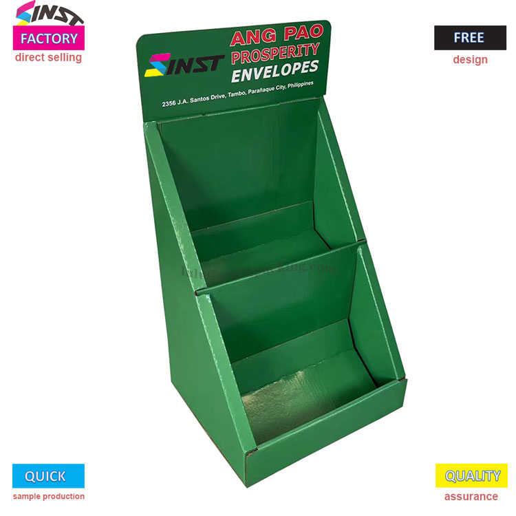Šis laiptelinis vokų darbalaukio popieriaus ekrano dėžutė yra pagaminta iš ekologiškų lengvų medžiagų, su šviesiai žalia ir šviežia spalvų schema, kuri puikiai atitinka įvairius parduotuvių dekoravimo stilius. Trijų lygių laiptų struktūra yra moksliškai padalinta į zonas, kuriose tuo pačiu metu gali būti rodomos įvairių specifikacijų vokų dovanų dėžutės. Unikalus sagties surinkimo dizainas leidžia montuoti ir išmontuoti tik 3 sekundes. Po sulankstymo storis yra tik delno dydžio, todėl jis yra ypač tinkamas parodų apyvartai, subalansuojant ekrano efektyvumą ir logistikos patogumą.