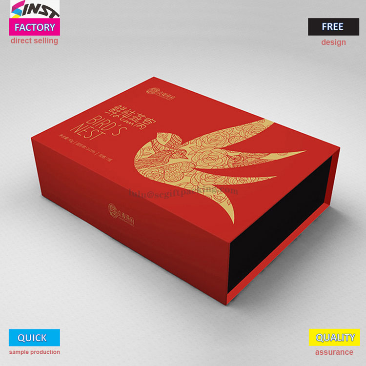 Šis aukščiausios klasės sveikatos produktas „Bird Nest Flip“ dangtelio dovanų dėžutė yra pagrįsta prabangiomis raudonos ir juodos spalvos suderinimais. Išorinė dėžutė pagaminta iš standžios kartono su magnetine angos ir uždarymo konstrukcija. Kai dėžutė bus atidaryta, yra vidinis tikslumo putų pamušalas. Šešios nepriklausomos pertvaros tiksliai rūpinasi kiekvienu paruošto paukščių lizdo buteliuku, kuris turi ir vaizdinį grožį, ir praktinę apsaugą. Nesvarbu, ar tai parduodama prekybos centre, ar dovanų dovanos šeimai ir draugams, kad išreikštų savo jausmus, jie visi rodo stilių.