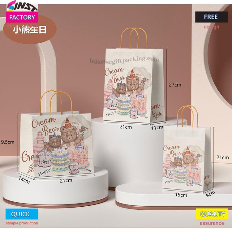 Neseniai„Sinst Packaging Company“ išleido dovanų maišąSu „Meškos gimtadienio“ tema. Krepšys atspausdintas rankomis nupieštu animacinių filmų lokiu ir pyragų raštais, suporuotais su šilta geltona rankena, kuri ne tik išlaiko ekologišką popierinio maišo tekstūrą, bet ir perteikia gimtadienio atmosferą per ryškias spalvas. Šis krepšys tinka įvairioms dovanoms, tokioms kaip kiaušinių pyragai, žaislai, dovanų dėžutės ir kt.