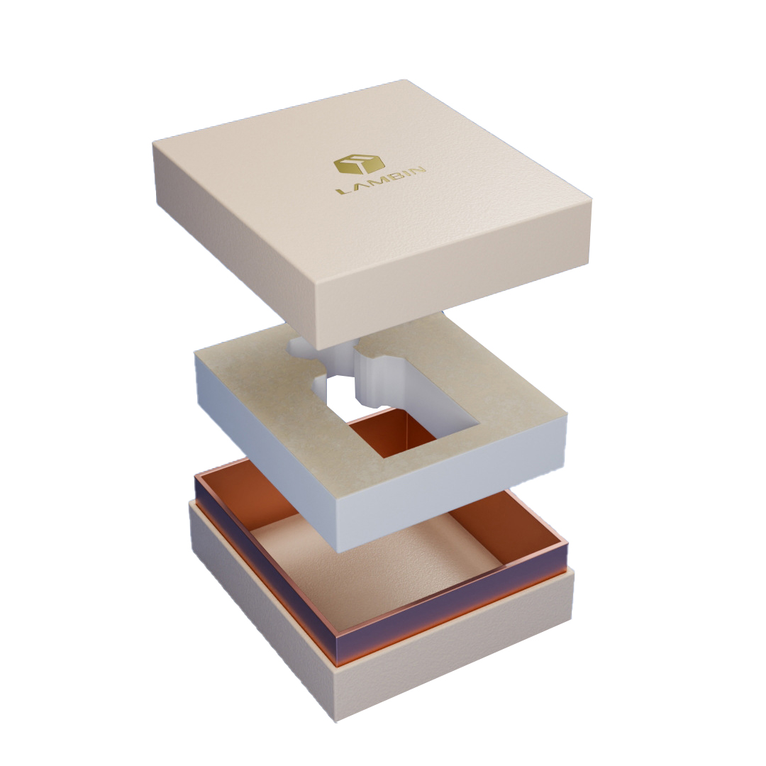 Iš sprogusio vaizdo šios dovanų dėžutės projektavimo logika yra labai aiški: tai dovanų dėžutė, pagaminta minkant ir surinkus viršutinį dangtelį ir vidinį pamušalą, o apatinis dangtelis ir vidinis pamušalas kartu. Viršutinis sluoksnis yra smėlio spalvos dėžutės dangtis su auksinio prekės ženklo logotipu, įspaustu ant paviršiaus, užtikrinantis subtilų ir ne įbrėžimą; Vidurinis sluoksnis yra raktas - tuščiavidurio pamušalo forma puikiai tinka bendro kvepalų butelio dugnui, pavyzdžiui, „mažam dėklui“, pritaikytam buteliui. Net jei dėžutė bus dedama į lagaminą, kvepalų butelis nesuks ir susidurs dėžėje; Išvaizda priima įrėmintos dovanų dėžutės stilių, ant kurio paviršiaus įspaustas specialus popierius, o ant rėmo rožės auksinės kartono. Pamušalas pagamintas iš balto EVA flanelės audinio. Nuo išpakavimo iki rodymo kiekvienas kampas išstumia prabangią tekstūrą.