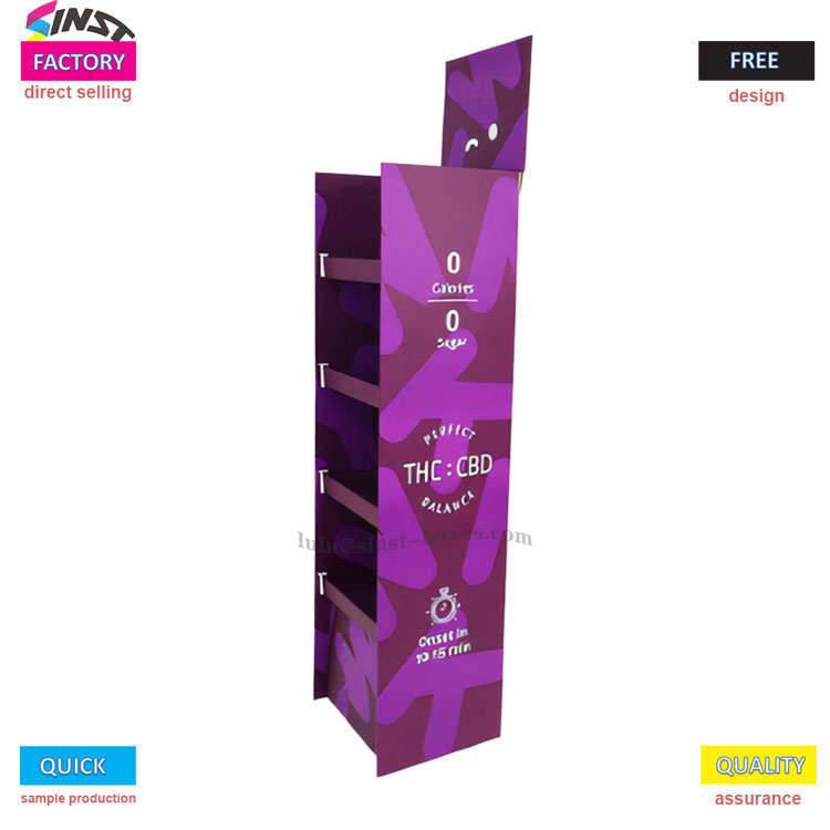 Kas čia gero? Pirma, spalva ryškiai violetinė su žaismingais raštais, kuriuos galima pastatyti prie kasos ar lentynos ir iškart patraukti žmonių dėmesį; Be to, jis yra padalintas į kelis sluoksnius, kuriuose galima eksponuoti daug smulkių daiktų ir neužimti vietos, todėl daugiau žmonių gali pamatyti šias smulkmenas parduotuvėje; Be to, ši lentyna pagaminta iš kartono, o tai taupo išlaidas ir leidžia mažoms parduotuvėms įsigyti nesirūpinant dėl pinigų; Galiausiai tai pagamina sena gamykla, kuri jau 15 metų gamina parodų stendus. Galite pritaikyti bet kokį norimą stilių ir greitai paruošti jį skubiems užsakymams arba pavyzdinei gamybai. Jai surinkti nereikia įrankių, o tai ypač patogu.