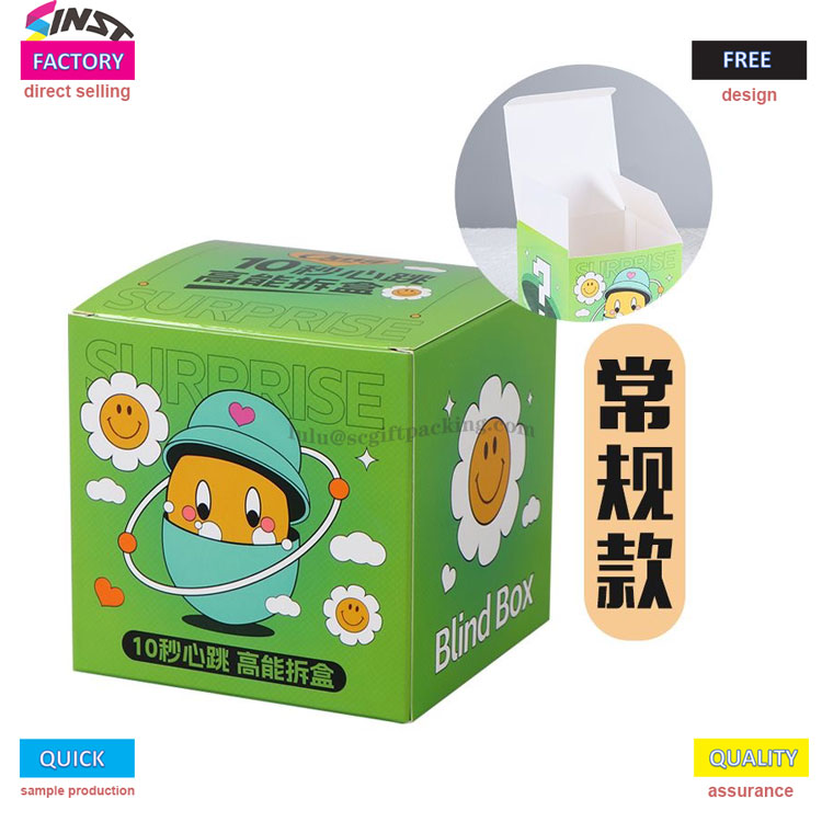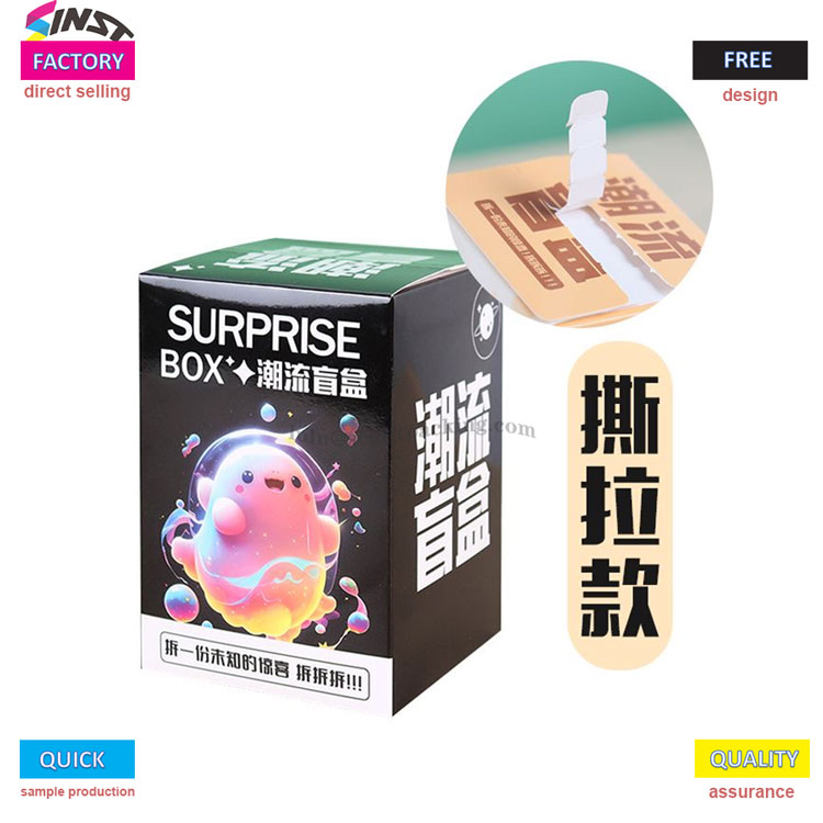 Tarpą „Loll Blind Box“ nuplėšimo kortelės dėžutė gali būti pritaikyta atsižvelgiant į klientų poreikius. Šiuo metu dėžutės dydžiai yra: 6 * 6 * 10cm; 10 * 10 * 15cm; Šioje dėžutėje gali būti naudojama spausdinta aukštos raiškos ir importuotas rašalas,