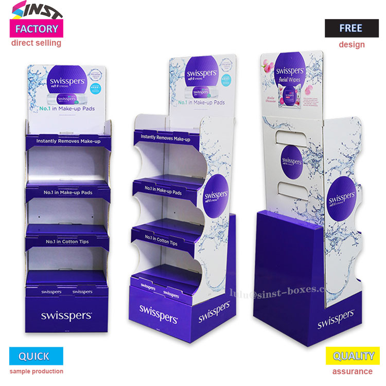 Drėgnos servetėlės ekrano stovas sukurtas iš kelių sluoksnių, kurių kiekvienas turi griovelius, kad būtų galima saugiai laikyti mažus daiktus, tokius kaip drėgnos servetėlės ir medvilniniai tamponai, todėl jį lengva pasiekti. Medžiaga yra kartonas, kuris yra lengvas ir lengvai išdėstomas, taip pat patogu papildyti atsargas. Jis priklauso ekrano įrankio tipui, kuris atrodo paprastas ir tvirtai naudojamas.